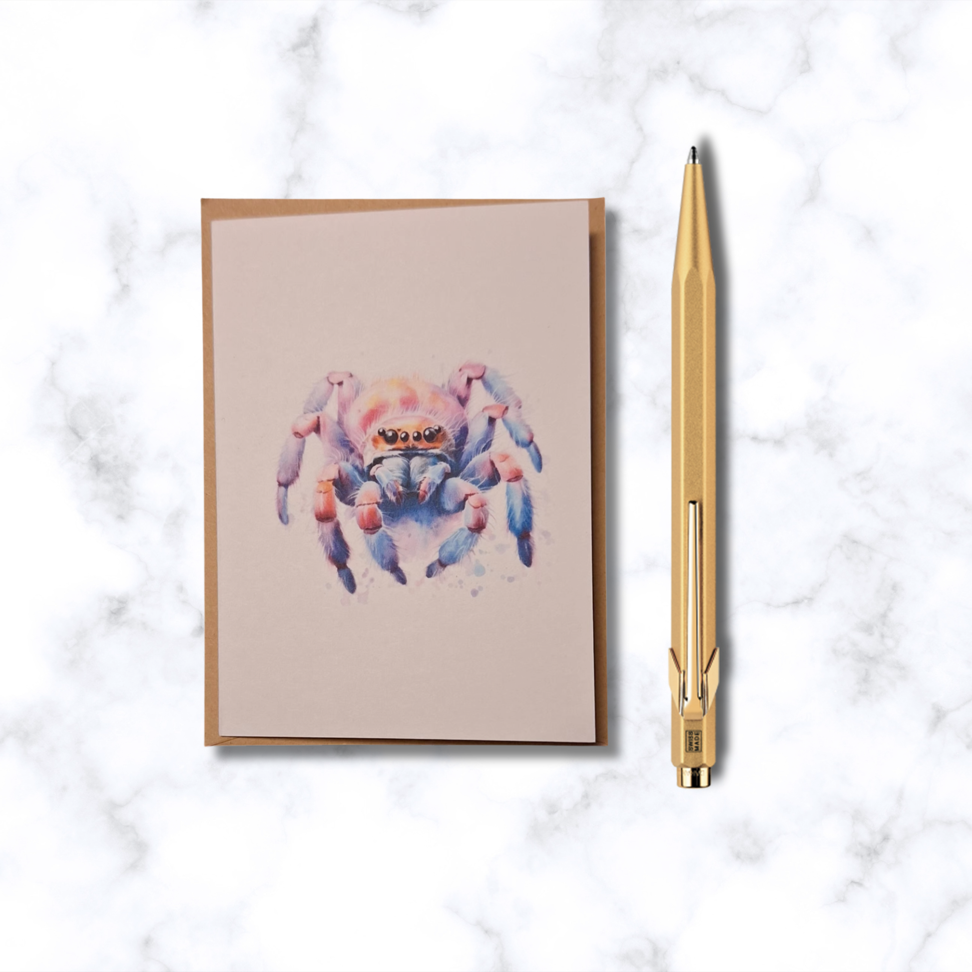 Celebrate arachnid enthusiasts with this charming watercolour tarantula greeting card.